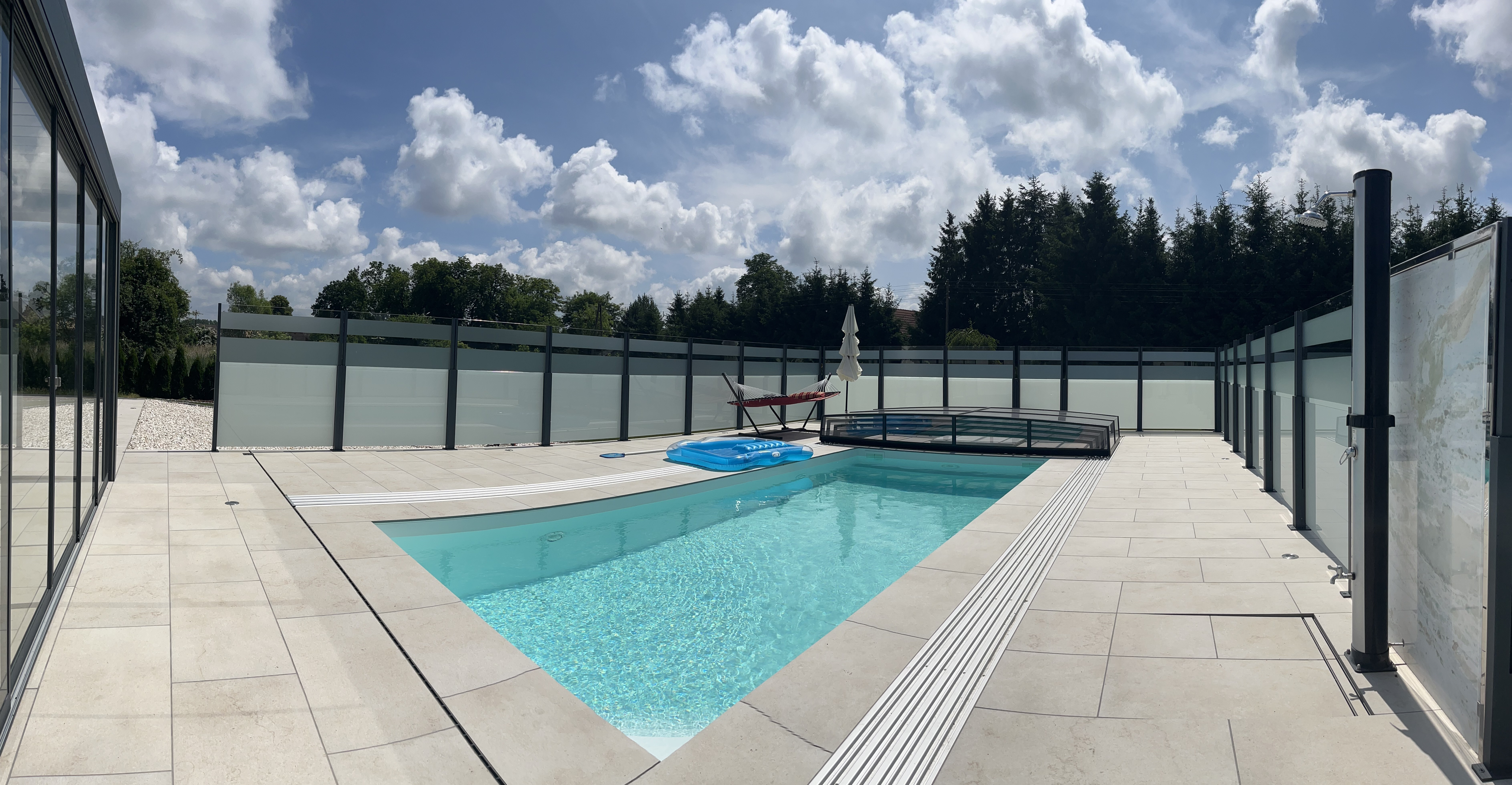 Nasze balustrady składają się z dwóch części – dolnej stałej i górnej ruchomej. Dzięki możliwości wysunięcia górnego panelu zyskujesz dodatkową ochronę przed wiatrem i innymi warunkami pogodowymi, zachowując jednocześnie pełną przejrzystość.